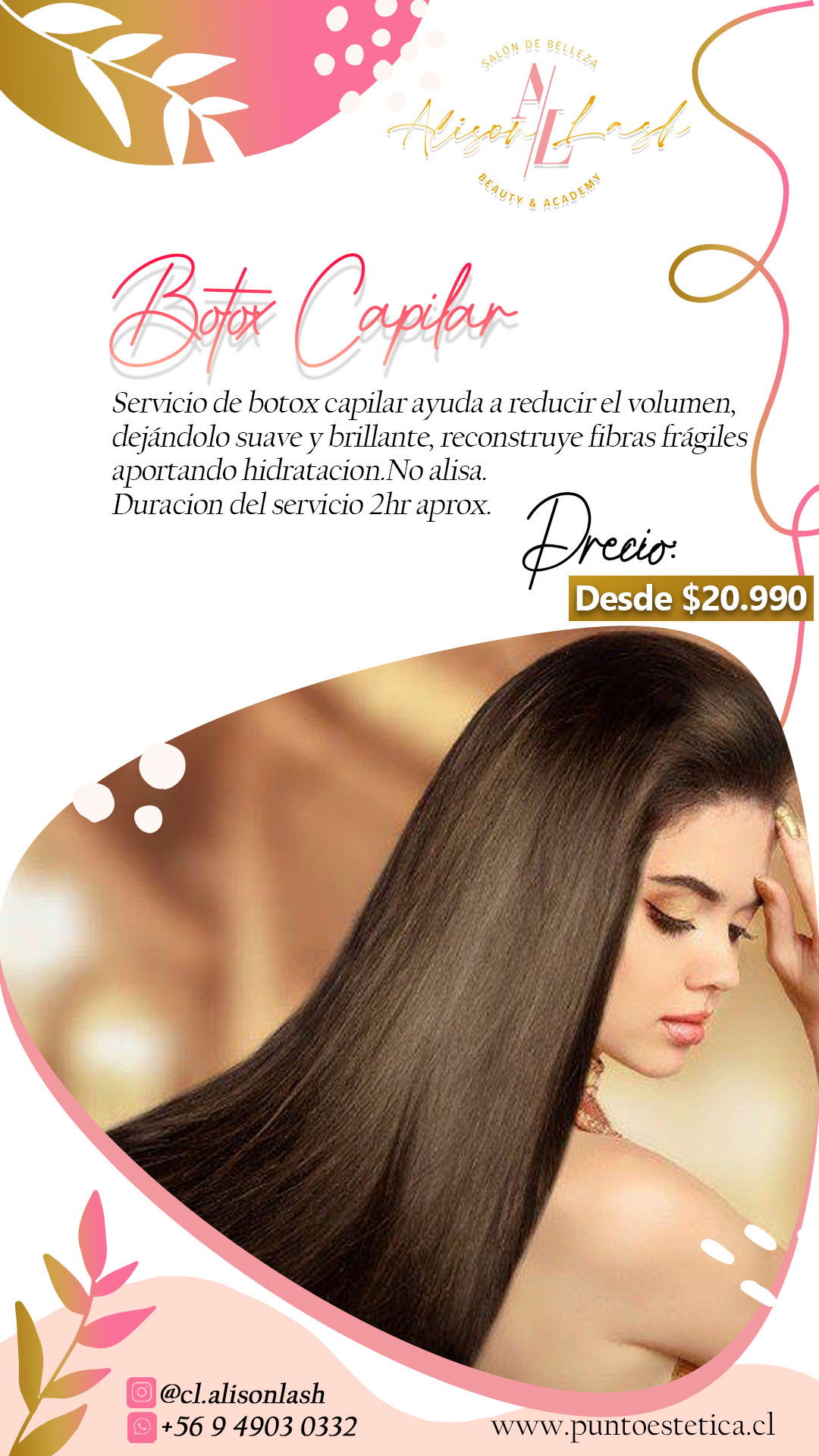 Servicio de alisado capilar ayuda a reducir volumen alisando la fibra capilar, aportando hidratación, brillo y sedosidad al cabello. Productos Profesionales Duración del servicio 3.00hrs aprox. ***CONSULTA TU VALOR SEGUN LARGO Y VOLUMEN ANTES DE AGENDAR O * Agenda con el valor minimo Dependiendo de largo y volumen del cabello