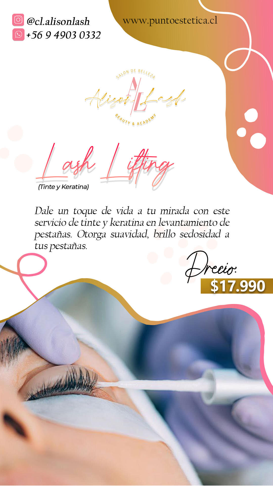 Ahorra tiempo en las mañanas encrespandolas. Aumenta el tiempo para ti, pestañas sanas y curvadas por 4 a 6 semanas. Tiempo del servicio 1 hora 45 min. Dale un toque de vida a tu mirada con este servicio de tinte y Keratina en levantamiento de pestañas. El tinte de dara un color negro brillante intenso. La Keratina otorga suavidad, brillo y sedocidad a la pestaña.